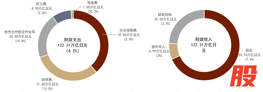 注:括号内百分比为与2025年度原始预算的比较变动率。防卫费若包含数字厅计列的相关部分,则为9兆353亿日元。
