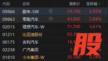 新能源汽车股走强,蔚来涨近7%。消息面上,蔚来公司公布,预计去年第四季度经调整经营利润约7亿至12亿元人民币,此为公司首次录得单季度经调整经营利润;2024年第四季度经调整经营亏损55.44亿元人民币。公司预计实现经调整经营利润主要是公司于2025年第四季度销量持续增长;有利的产品组合推动汽车毛利率优化;公司持续推行全面降本增效措施。