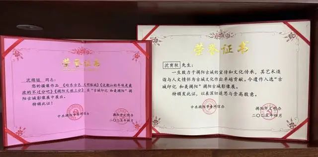 2025年4月,沈绵钺和爷爷沈育秋的摄影作品在“古城印记 和美揭阳”揭阳古城影像展中展出,他在社交媒体分享:“替爷爷领了个奖”。